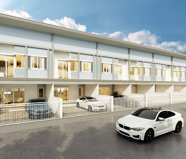 – รูปแบบบ้าน : ทาวน์โฮม 2 ชั้น หน้ากว้าง 5.7 เมตร